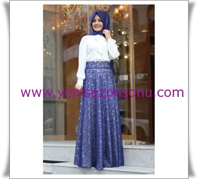 Ana Sayfa - yeni sezon modelleri - yeni sezon pınar şems kapalı giyimi - yeni sezon pınar şems 2014 dantelli saks verev etek kapalı giyimi modelleri